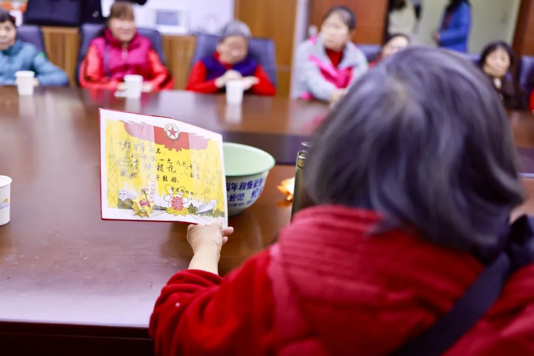 一旁的颜阿姨小心翼翼地翻开一本1986年的“荣誉证书”,讲述了自己如何在保育员岗位上被评为劳模的故事,赢得了大家的赞赏,众人纷纷对她竖起了大拇指。