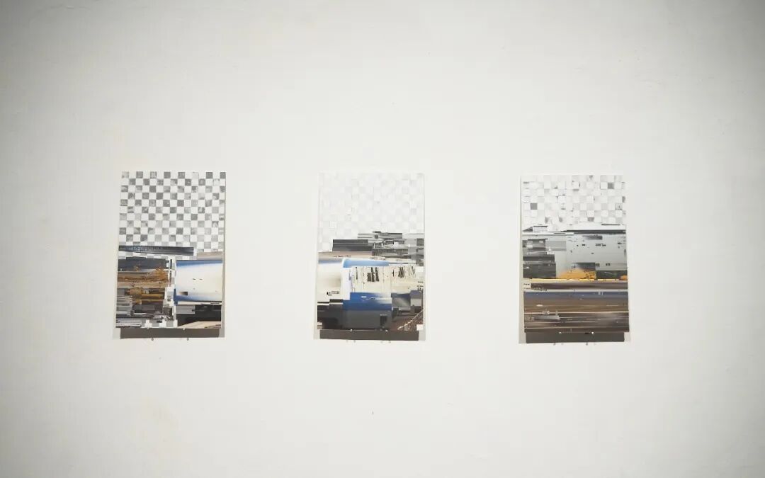 在編輯過程中,Photoshop的透明背景會顯示為灰白相間的方格圖案,但導出後,代表透明的方格圖案就會變成純白色。我將這種常被忽略的方格圖案繪製在三塊膠合板上,旨在突出和展示數字媒體的創作過程,而非僅僅關注最終成品。我花費數小時,通過耗時的繪畫工序,以一種觸感的方式複製了這種被忽視的透明圖層,而用於製作和列印作品“真正”主題——行駛中的地鐵——的時間則少得多。